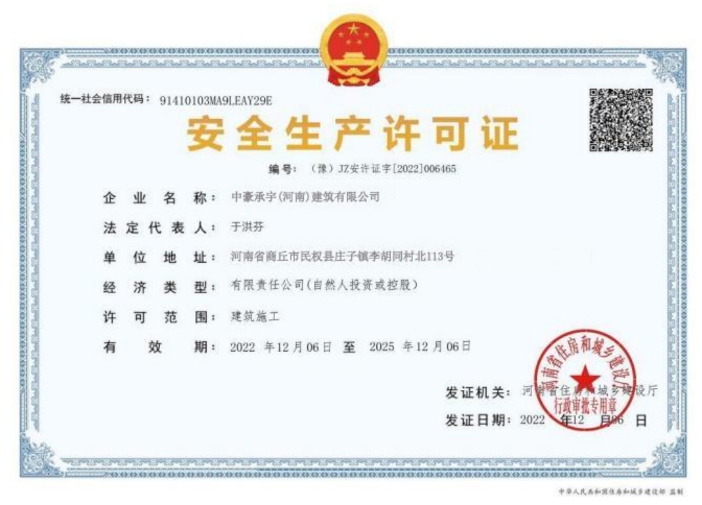 住建部中豪承宇(河南)建筑有限公司資質查詢